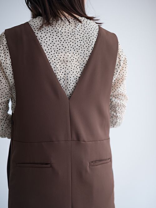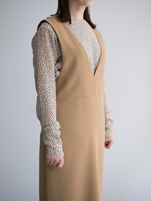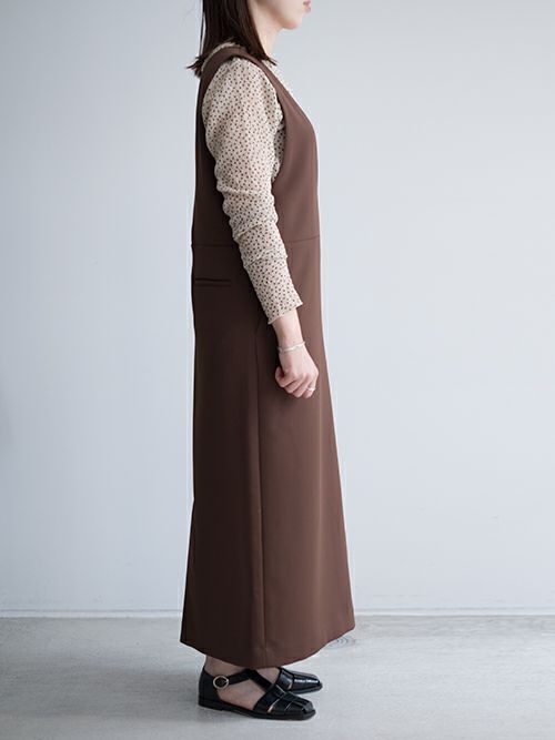 女性らしいⅤゾーンのあきがキレイなジャンパースカート。