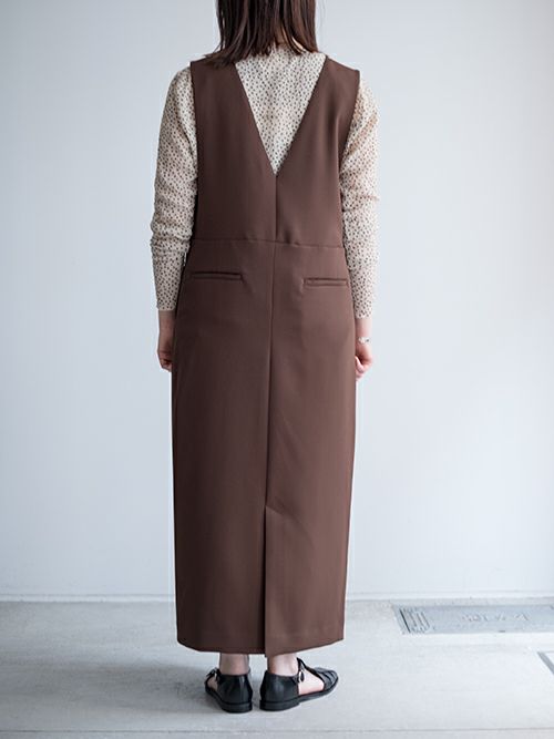 インナーのコーディネートによって雰囲気が変わるのでシーズン長く着用いただけるのでスタイリングの幅が広がります。バックスリットがあるので足さばきもよく、サンダル、パンプス、ブーツなどシーズンにより幅広く合わせていただけるのもポイントです。生地もカジュアル過ぎず、ジャケットを羽織ってフォーマルな印象にもなります。