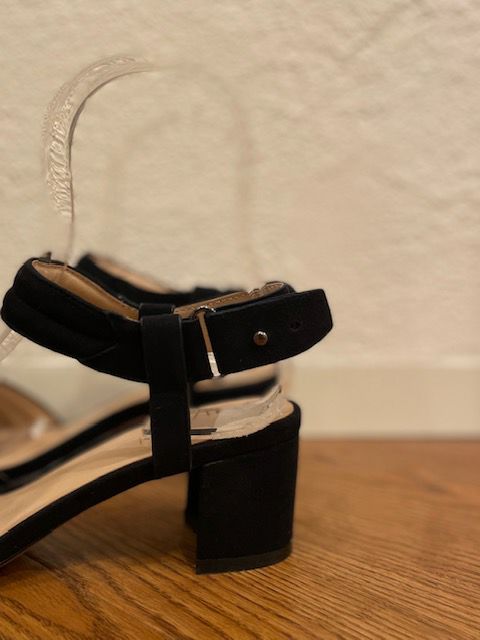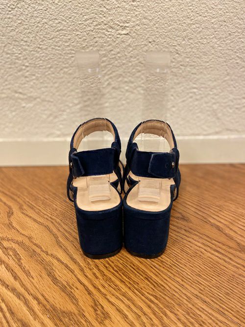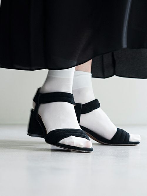安定感のあるチャンキーヒール。歩きやすさもさることながら、足首のストラップが女性らしい上品さを醸し出します。