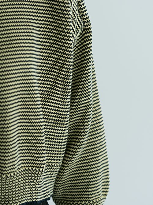 広く取った身幅とショート丈が、トレンド感を醸し出すコットンニット。アームは比較的すっきりとしており、全体のバランスをミニマムに仕上げています。