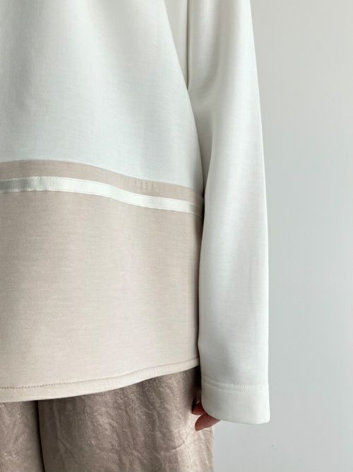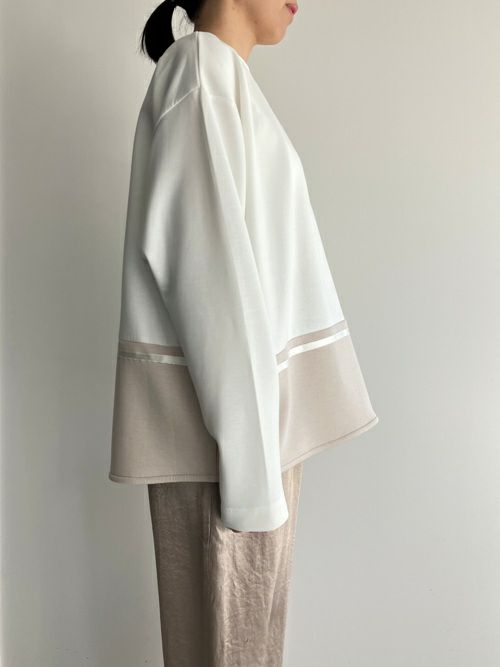 ビッグシルエットカットソーでゆったりとした着心地でストレスフリーに着用できます。切り替えにテープを使用したデザインがポイントとなり柔らかな女性らしさを演出するカットソーです。衿ぐりも開きすぎず1枚で、主役になるトップスものとしてデイリーに着用しやすいアイテムです。