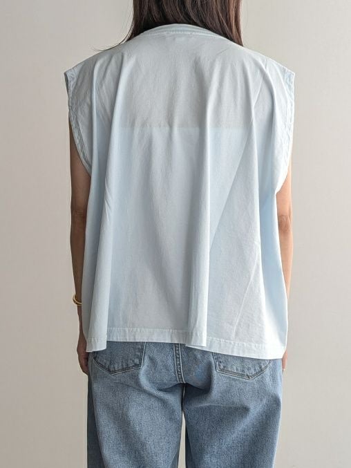 コットン100%のノースリーブワイドカットソー。全体的に横にゆとりを持たせて前見頃を短めにしたデザインカットソーです。肌触りも柔らかく程よく馴染んでくれます。短めの着丈ですのでワイドなパンツやスカートなどのボトムもバランスよく着用いただけます。スリーブは広めですのはインナーは必要です。ネイビー以外は多少の透け感がございます。