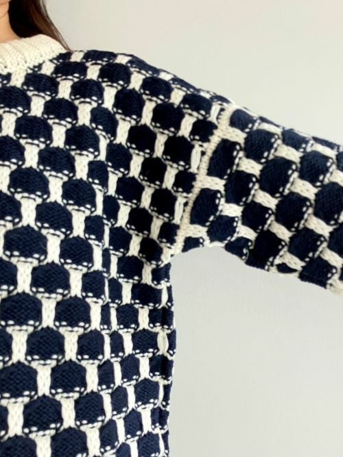 オーガニックウールを使用した立体的な格子柄ニット。目の詰まった格子柄編みのボックスラインでインナーにシャツなどを重ねてカラーもの少し差しても楽しめます。トラッドな雰囲気もありトレンドに左右されないアイテムでありながら、キャッチーで主役になるニットです。