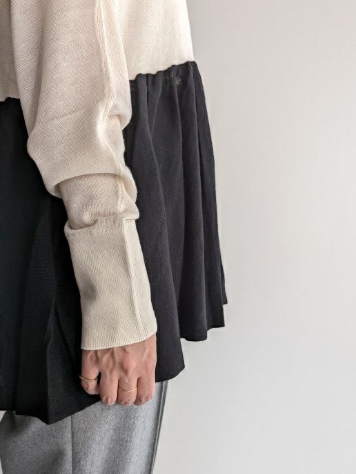 ギャザー切り替えがアクセントになったハイゲージニット。
