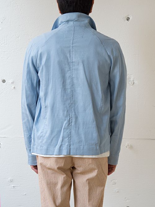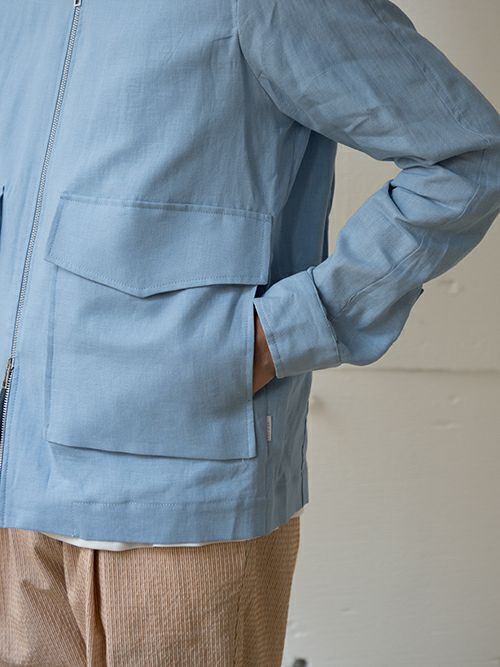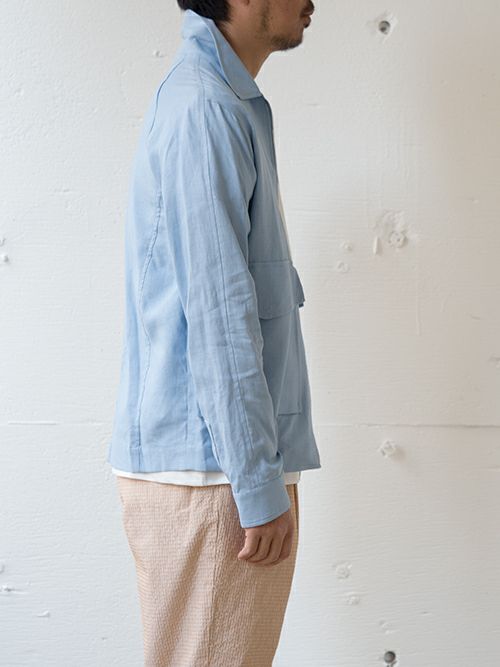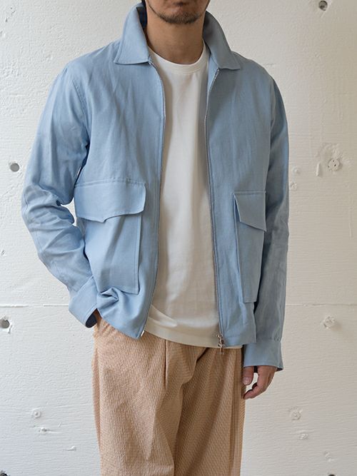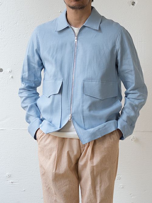 イタリア素材らしい、サックスブルーの麻素材を使用しています。