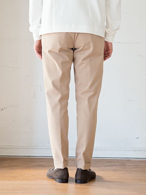 ベーシックな素材を使用し、ジャケットスタイル、カジュアルスタイルに合わせやすく、コーディネートの幅が広がる一着。