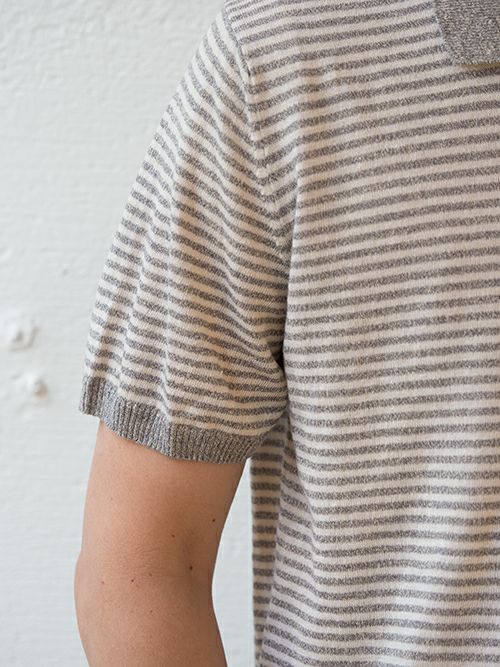 レギュラーフィットの半袖 14Gボーダニットポロ。
