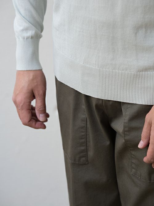 ベーシックなライトグレーで単体の着用は勿論、ジャケットなどのインナーにも合わせていただける万能さも兼ね備えています。