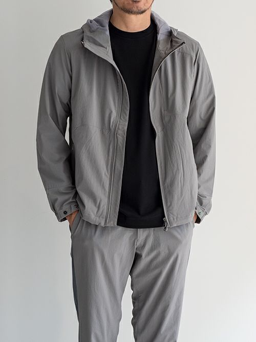 特殊な工程で縫製しており、着心地とシルエットに拘ったフードパーカー。東レのナイロンを使用した4wayストレッチ生地に、背面のテレコ素材リブをプラスする事で、様々なシーンに対応できる可動域を実現しました。同じく背面のジップを開ければ、畳んで仕舞えるパッカブル仕様なので、着心地だけでなく持ち運びにもストレスがありません。