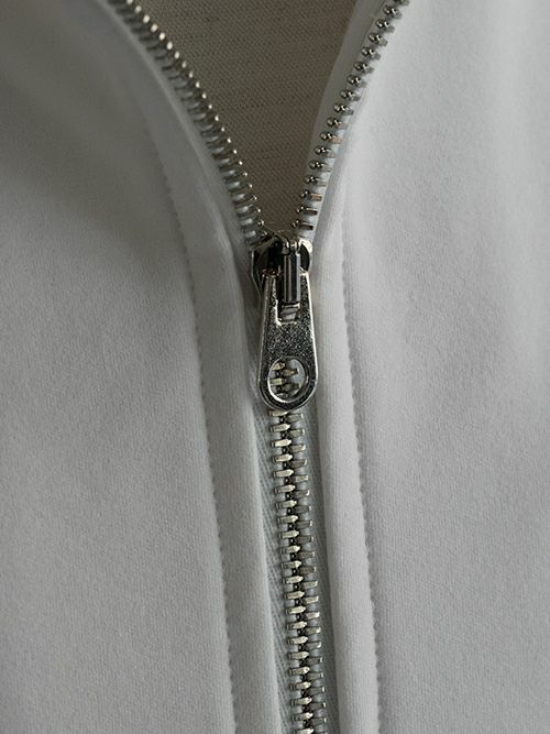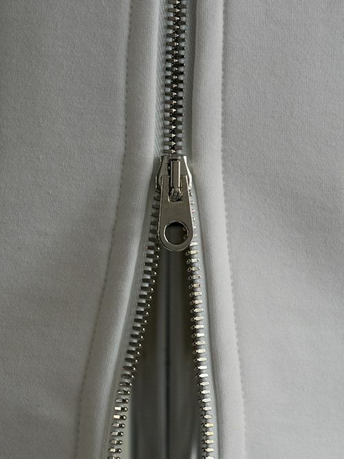 立体的なパターンで、フードの立ち上がりと大きさもバランスが良く、更にイタリアのLampo社の最高ラインのダブルジッパーを使用した高級感のある一着。
