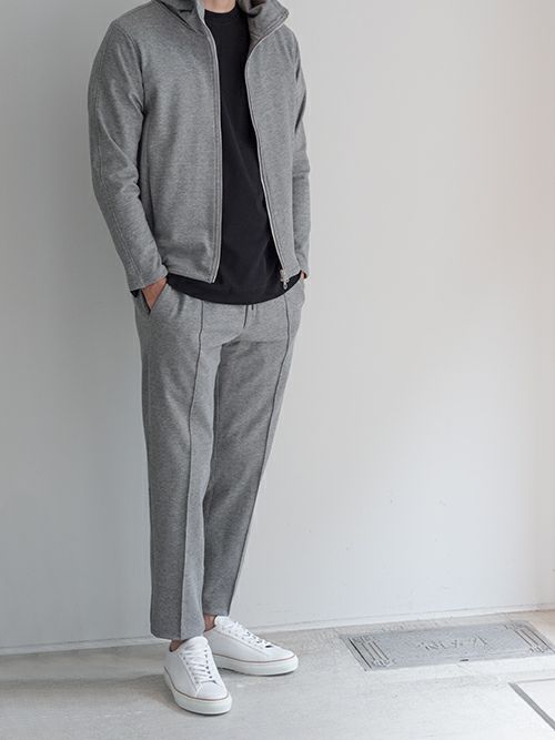 Tシャツなどのカットソーをインナーに入れていただくと、スポーティーな印象とフィットしてくれます。少し艶のあるスムース生地のカットソーやコットンニットですと、上品な大人の雰囲気が出ますので、より一層お薦めです。
