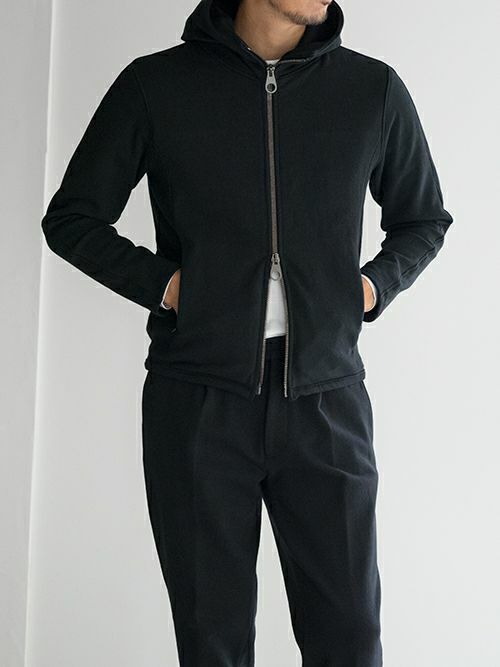 特殊な工程で縫製しており、着心地とシルエットに拘ったスウェットパーカー。綿裏毛にストレッチ糸を入れ込んで編んでおり、伸縮性に富んだストレスフリーな着用感です。