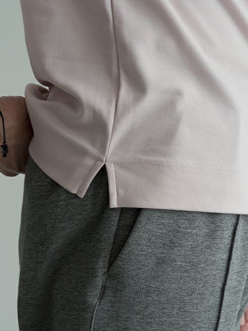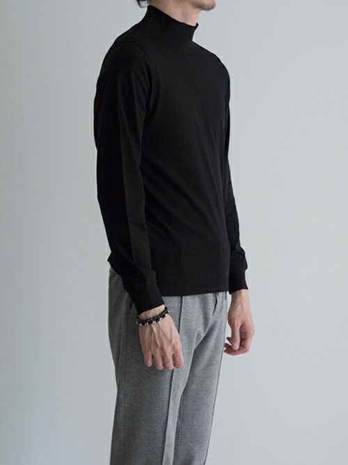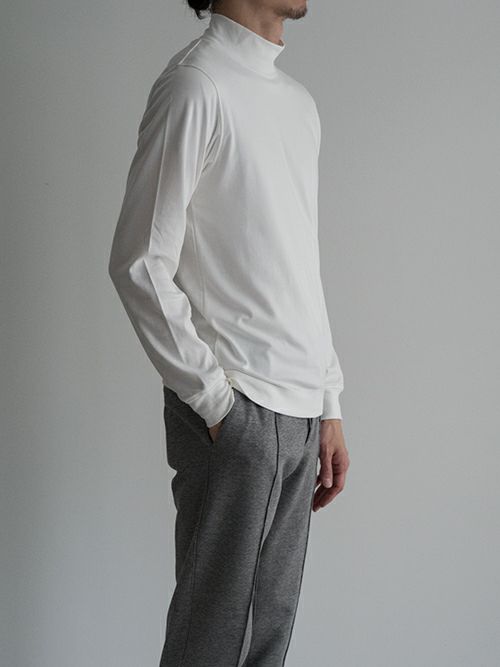 モックネックが大人のリラックスした着こなしのアクセントとなり、ジャケットのインナー使いにも適した汎用性の高さも魅力です。