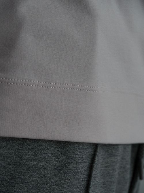 裾の仕様は職人技が光るカバーステッチミシンで、太めの折り返しにサイドスリットが入っており、こちらもシンプルなディテールの中で目を惹く拘りの一つ。