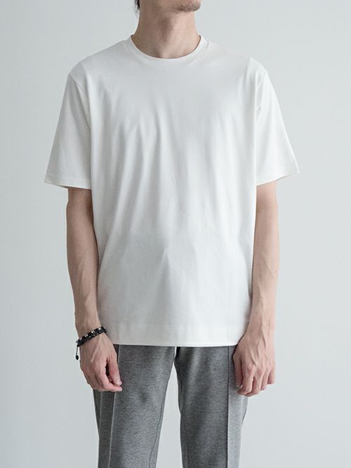 リラックスフィットのカットソー。生地はスビンコットンプラチナム(ファーストピック)のスムース素材を使用しており、肌触りは一般的なコットンとは明らかな違いを感じる事ができます。