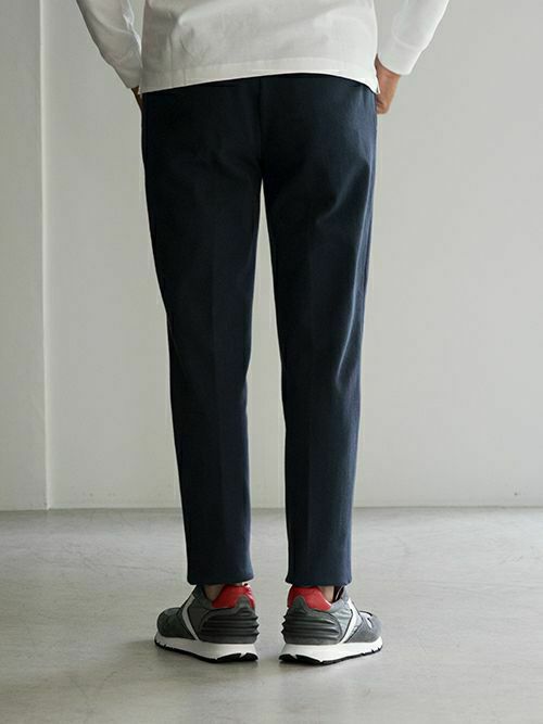 特殊な工程で縫製しており、着心地とシルエットに拘ったスウェットパンツ。ストレッチ素材と縫製により、綿裏毛にストレッチ糸を入れ込んで編んでいます。ハリがあり、長時間座っていてもシワになりにくい生地感です。ウエストがゴムシャーリングのディティールでフィット感も抜群。センタークリースステッチが施され、オン、オフと1本あれば着回しの効く一着。