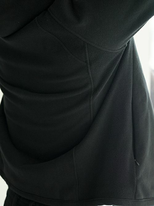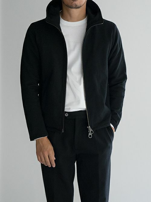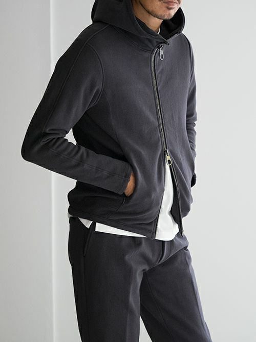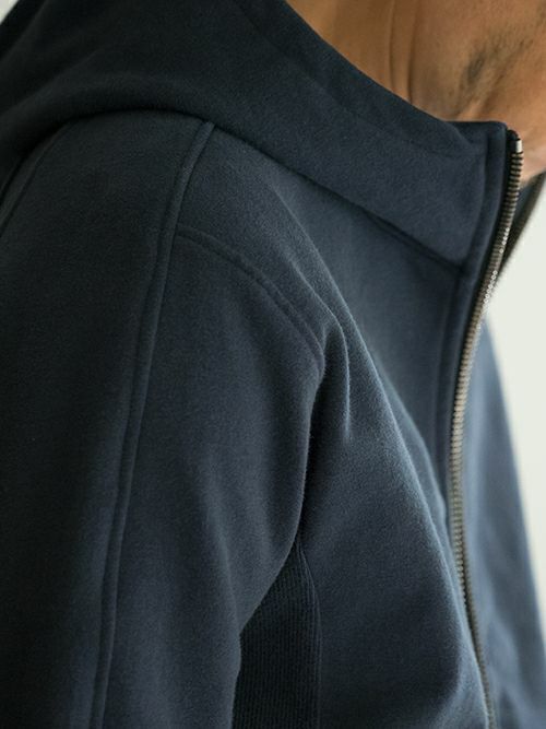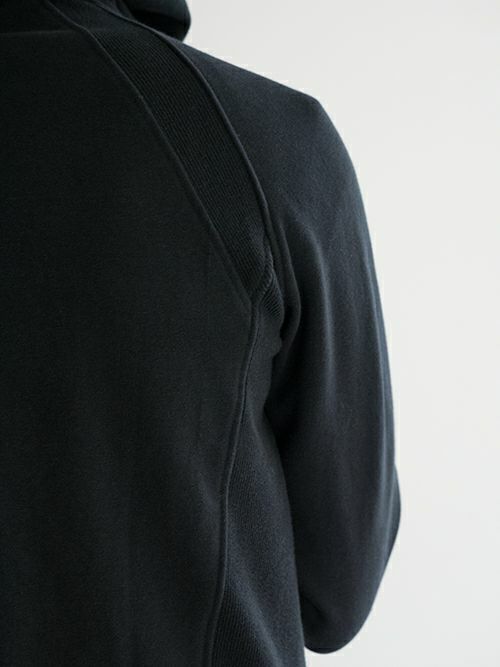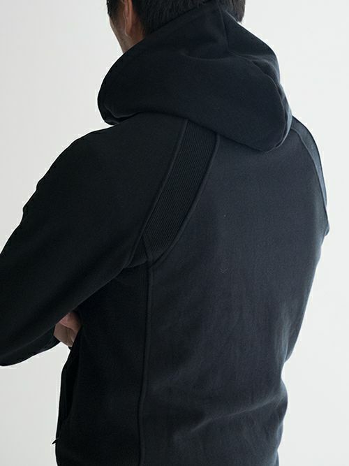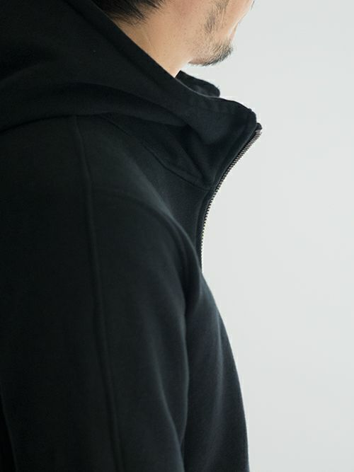 特殊な工程で縫製しており、着心地とシルエットに拘ったスウェットパーカー。綿裏毛にストレッチ糸を入れ込んで編んでおり、伸縮性に富んだストレスフリーな着用感です。