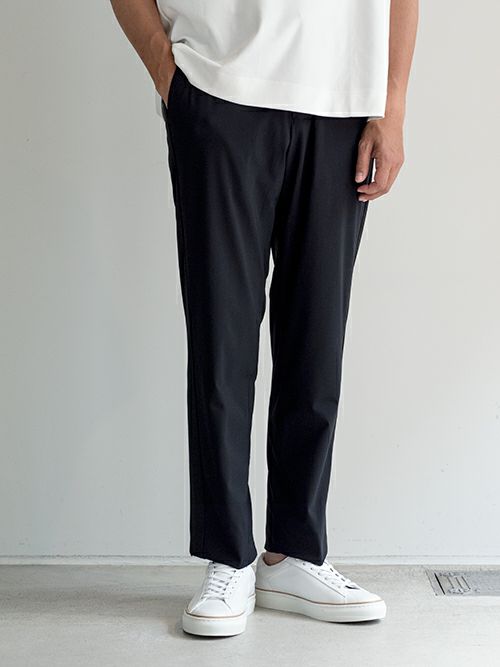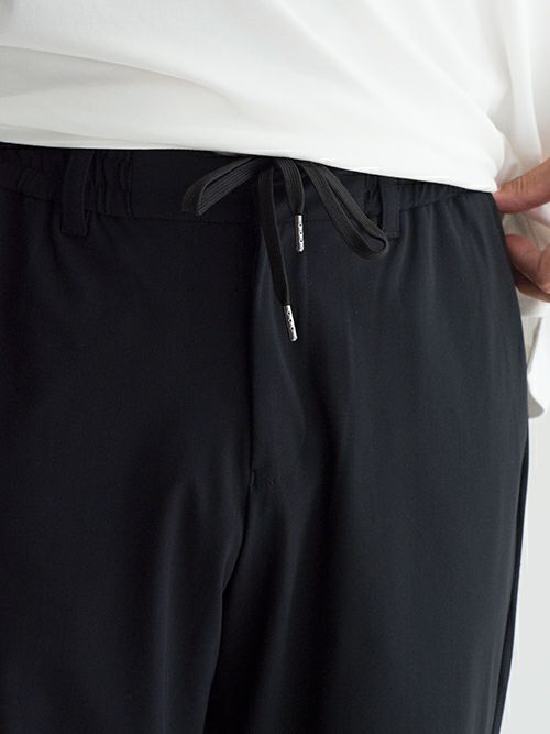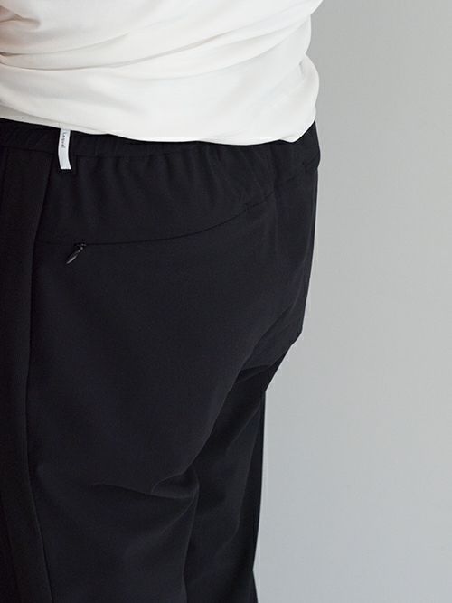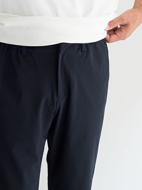 この生地は極細ナイロンとライクラを結束したもので、強い耐久性と物質安定性、また回復力にも優れ、また、UVカットで防シワ性、丸洗い可能とゴルフやジムなどのスポーツ時にも適しています。まさに大人がジムへの行き帰りなどで着用したり、ウエストはドローコードとベルトループの2パターン仕様なので綺麗めのジャケットと合わせて単品使いもできるアイテムです。各パーツは一つ一つ拘って選んだもの。裏地は裾まで付いているので、冬場にも対応可能なモデルです。