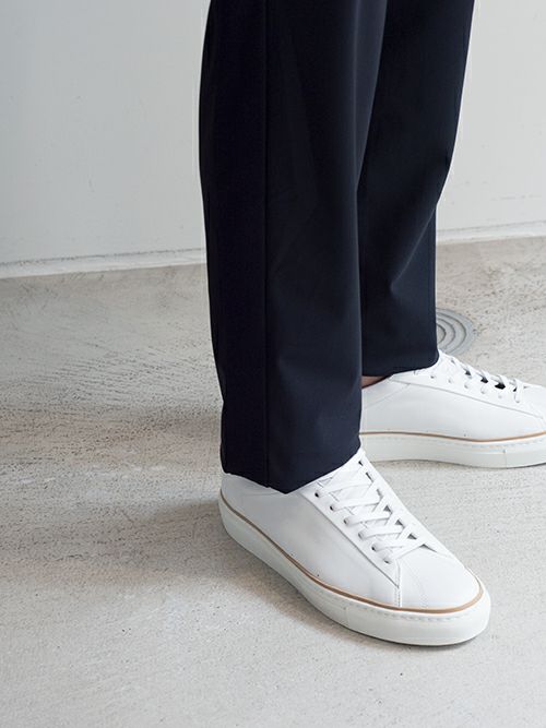 トップスはカットソーやニットアイテムを合わせるのがお薦め。ソリッドなものだとカジュアル感が抑えられ、上品な大人のスタイルをお楽しみいただけます。