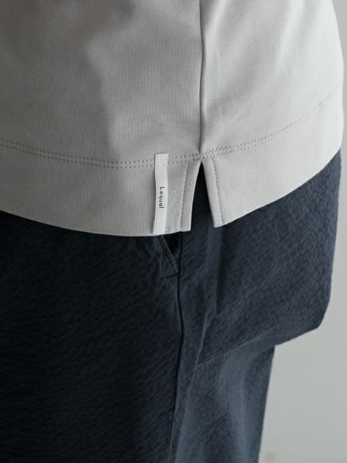 ジャケットのインナーに着用する事を前提に作成され、ネックが前に比べ後ろ側が高く設定されています。ジャケットを羽織ると、後ろからカットソーが見えるようになっており、見栄えだけでなく汚れ防止にもなる計算された作り。