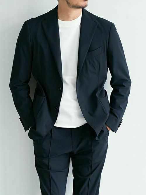 ノッチドラペル3つボタンの段返り、ポケットはバルカパッチ仕様。サイドベンツで一枚芯の軽快なジャケットに仕上げています。パンツは2タックのウエストはドローコードとベルトループの2WAY仕様です。
