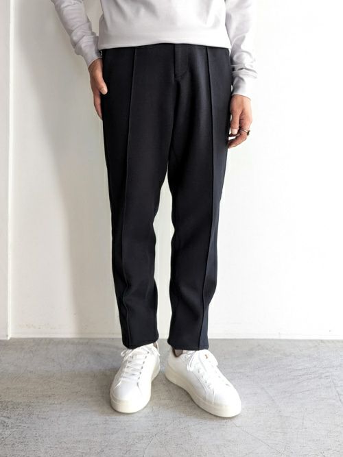 シルエットはすっきりしていながらも細すぎずの絶妙な塩梅。キックバックが強い生地に、センタークリースはミシンステッチを入れておりますので、膝が出にくく形をキープできます。
