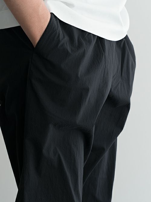 特殊な工程で縫製しており、着心地とシルエットに拘ったパンツ。日本のナイロンを使用した生地で、軽さとリラクシーな着用感が魅力的です。