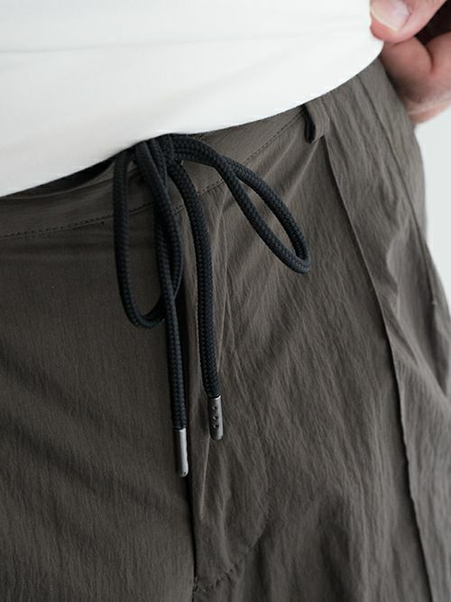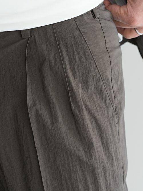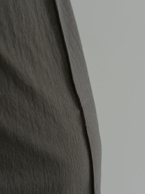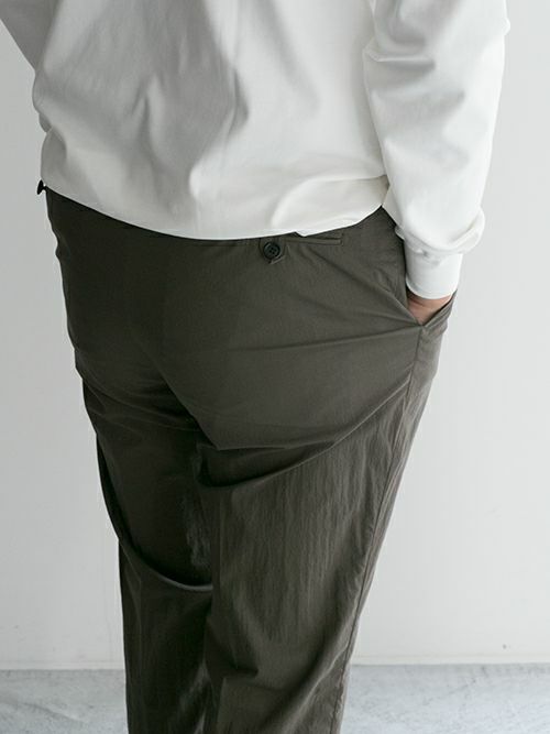 ポリウレタン混で非常にキックバックが強く、アクティブな動きにも対応します。合織素材ながら、ヴィンテージ加工によるナチュラルなシワ感と糸質により、仄かに艶のある生地表面が特徴的。撥水加工も施しているのも嬉しい魅力の一つです。