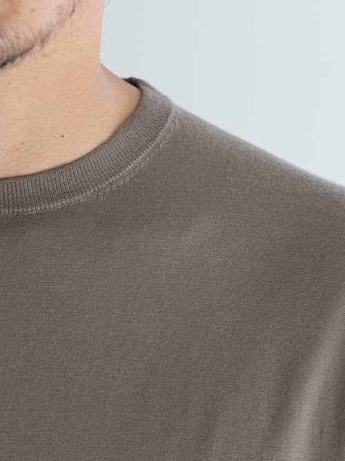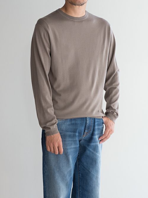 そんな原毛を使用したクルーネックは、高番手ながら絶妙なリラックスフィットに仕上げました。