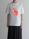フロントにフラガールの横顔が大きくプリントされたキュートなTシャツ。ベーシックなシルエットで、着心地は軽くストレスフリーな肌触り。ボリュームのあるパンツやスカートなど、ボトムスを選びません。
