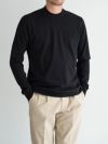 ジャケットのインナーに着用する事を前提に作成され、ネックが前に比べ後ろ側が高く設定されています。ジャケットを羽織ると、後ろからカットソーが見えるようになっており、見栄えだけでなく汚れ防止にもなる計算された作り。