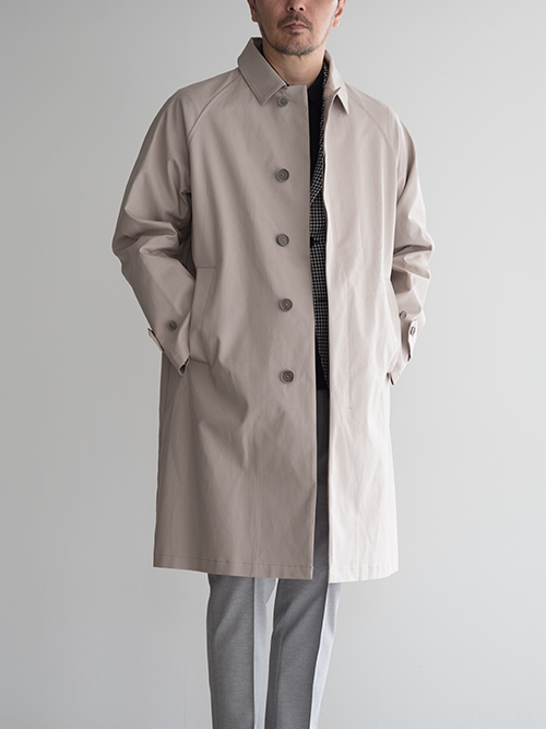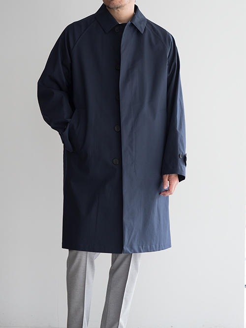 フロントは比翼仕様で、すっきりとした印象に仕上がっており、膝丈のロングシルエットが歩くたびに自然な動きを生み出してくれます。