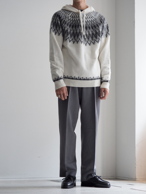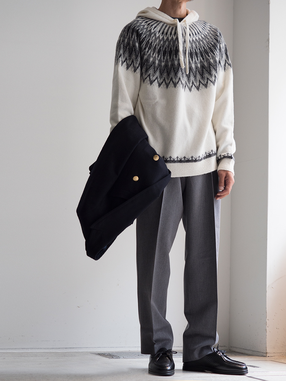 と、心配する気持ちをサラっと吹き飛ばす、ロベルトコリーナ渾身の一着がこちらのニットフーディー。