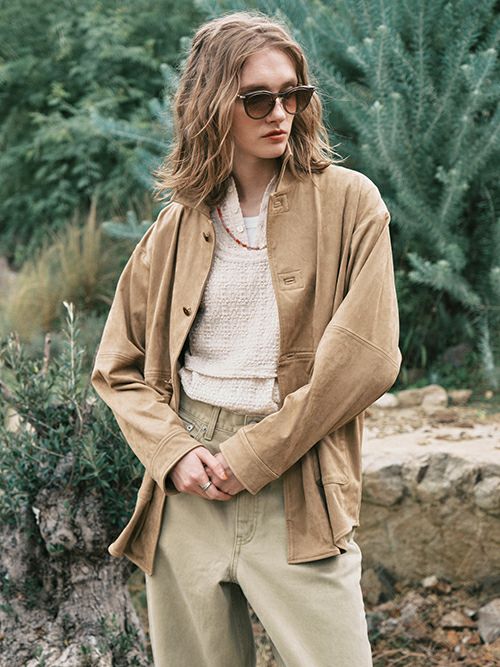 季節の境目、何を羽織れば良いか迷うことはありませんか?軽やかでありながら品のある雰囲気を纏えるアイテムとして、Le Melangeのエコスエードシャツジャケットがおすすめ。
