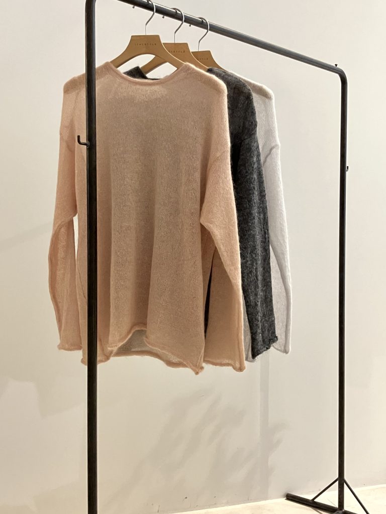 透け感のある軽~いモヘアにレイヤードがお勧め。