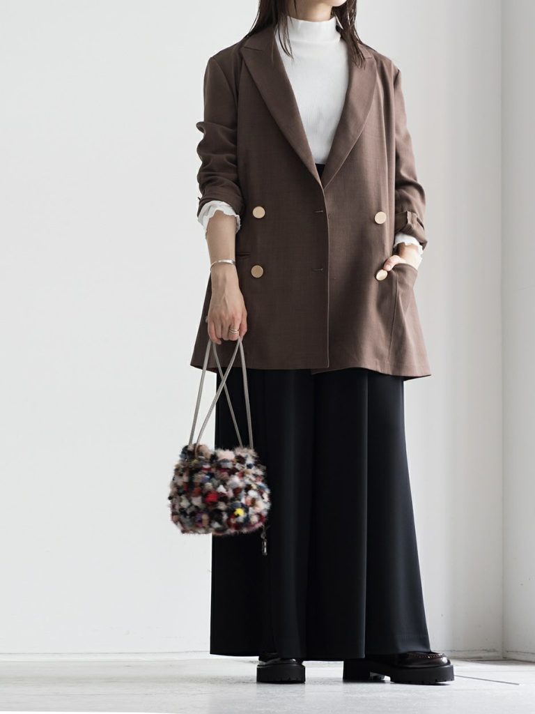 ハンドルの長さや持ち方で雰囲気を変えられるので、服装やシーンに応じて自在に使いやすいのが嬉しいポイント。ミンクの高級感があるため、冬のフォーマルからカジュアルまで幅広く活躍します。