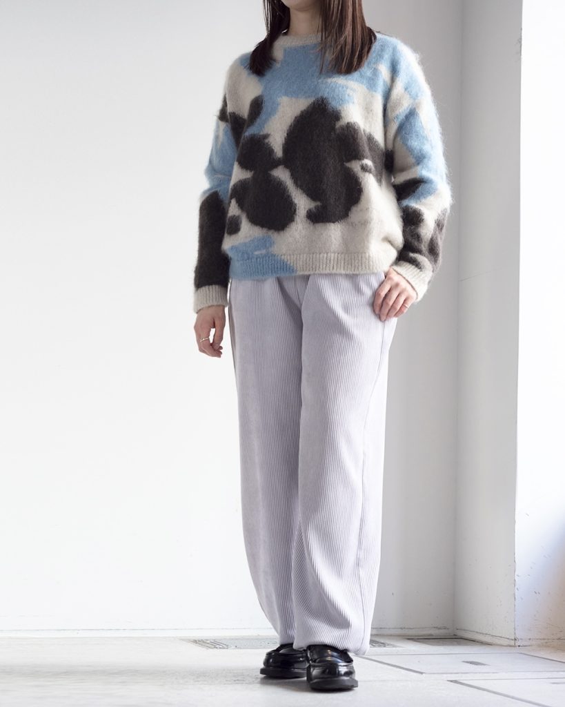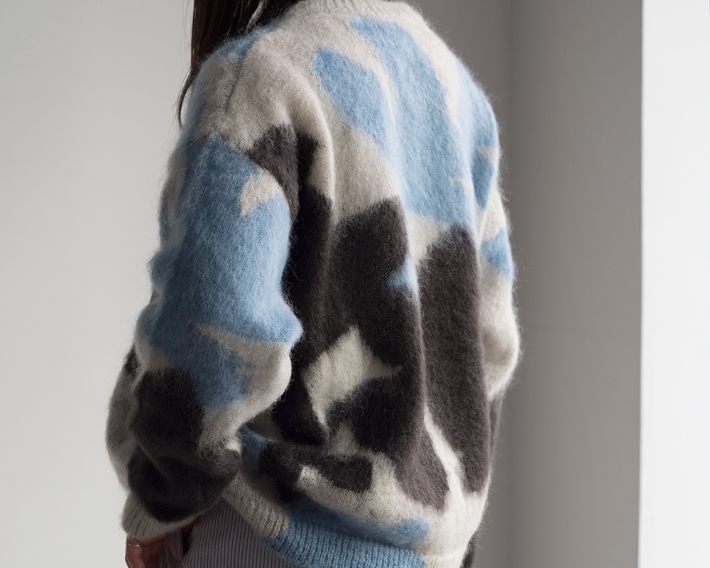 アート作品のように大胆且つ繊細なカラーパターンが、冬の装いに華やかさと抜け感を同時にもたらしてくれます。