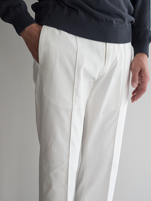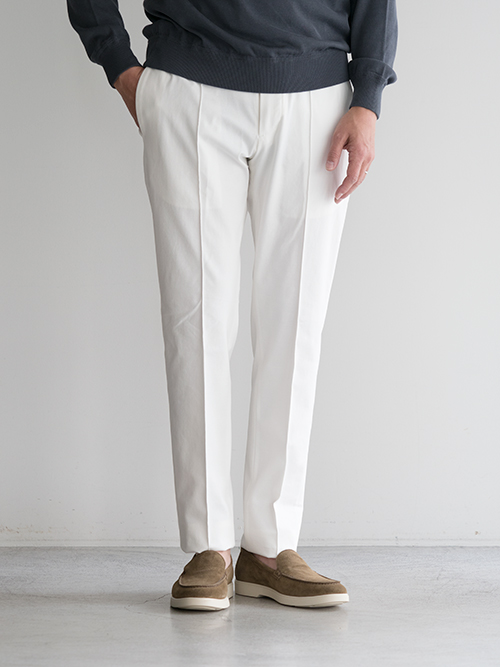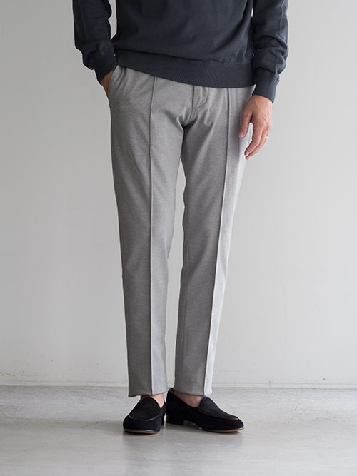 ブランドの代名詞とも言える「MASACCIO」モデル。テーラードの美しいラインをベースにしながら、ジャージー素材で仕立てることで、見た目と着心地を高次元で両立させた一本です。