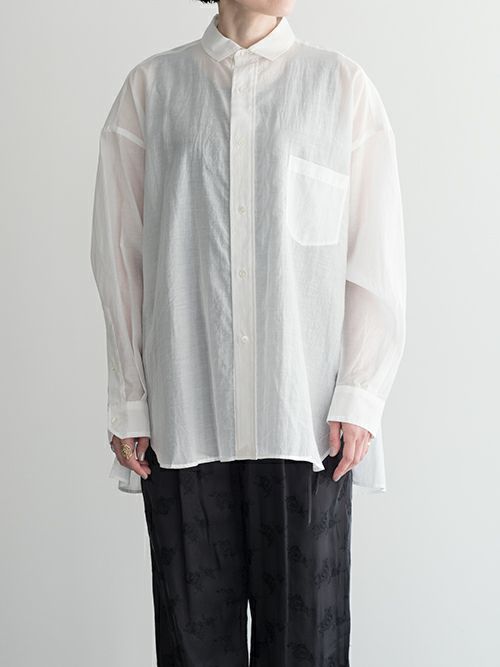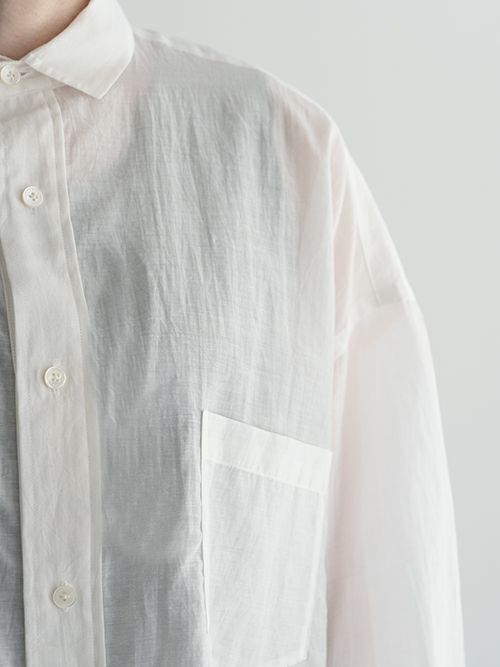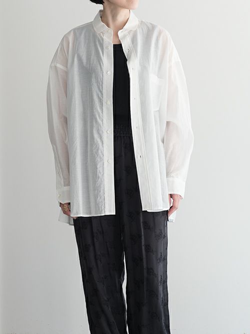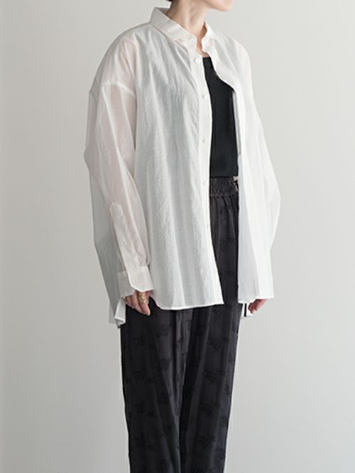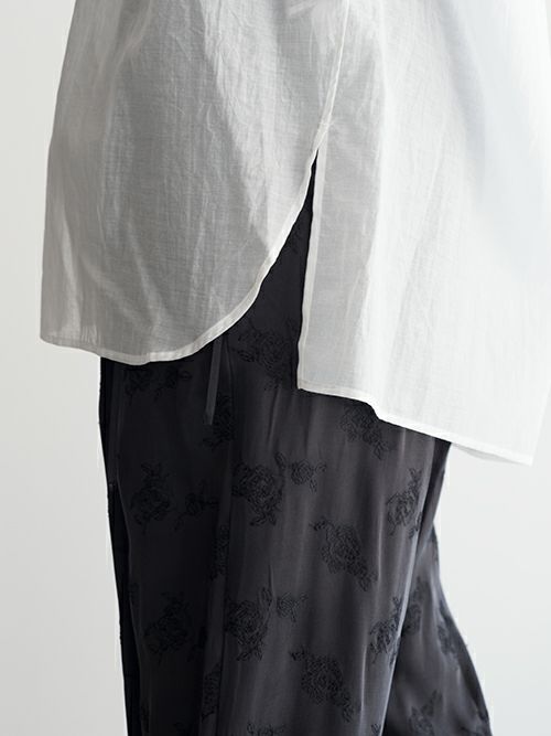 素材にはコットンにシルクをブレンドした上質なファブリックを使用。さらりとした軽やかさに、ほのかな光沢と滑らかな肌触りが加わり、シンプルながら確かな存在感を放ちます。