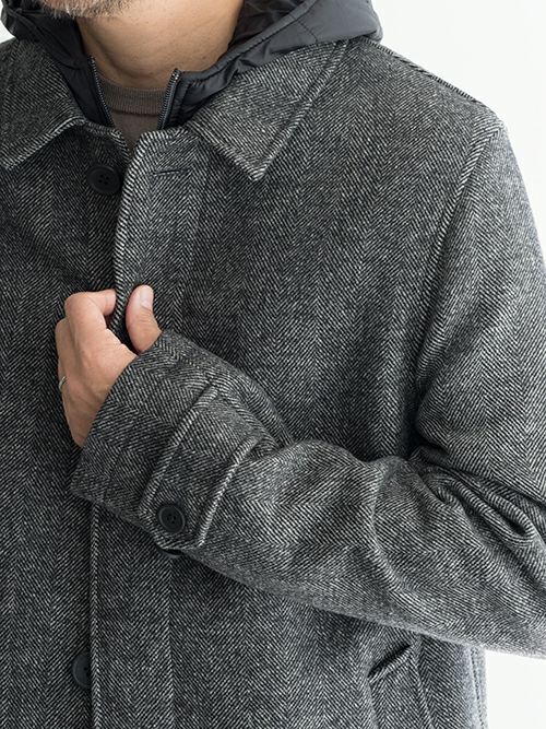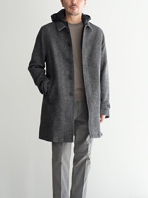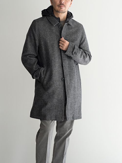 さらに、ヘリンボーン調の織りによるクラシックな表情と、スポーティなライナーフードというギャップのある組み合わせが、“大人のこなれ感” を演出します。カジュアルにもきれいめにも自在にハマる万能アウターです。
