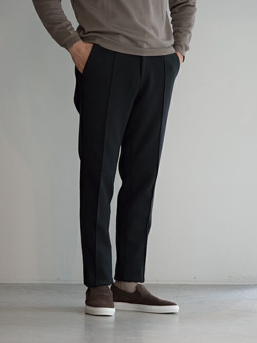 膝が出にくいキックバックの強い素材のため、長く綺麗に穿けます。