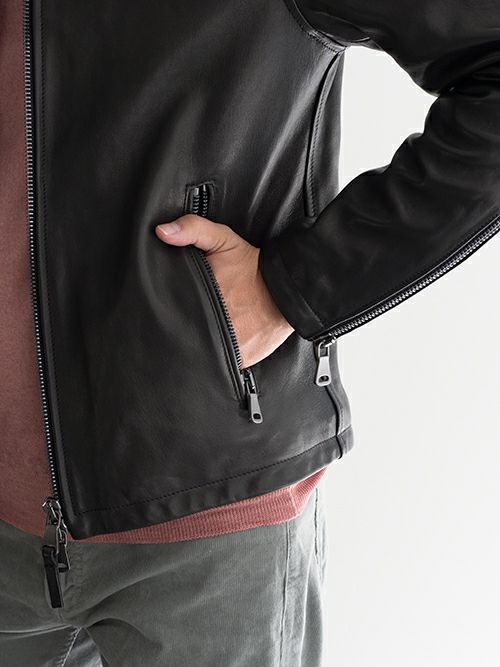 ライダースには欠かせない袖口ファスナーが程よい無骨さを。