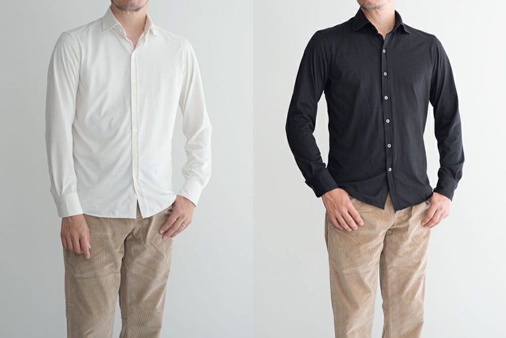 勿論ジャケットに合わせて着用いただくのもおススメですが、タックインするも良し、ドレスシャツより丈感も短めに作られていますのでそのまま1枚で着用いただくのもおススメです!