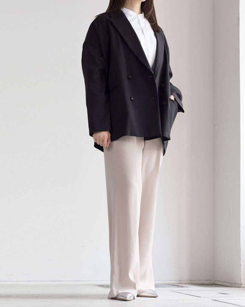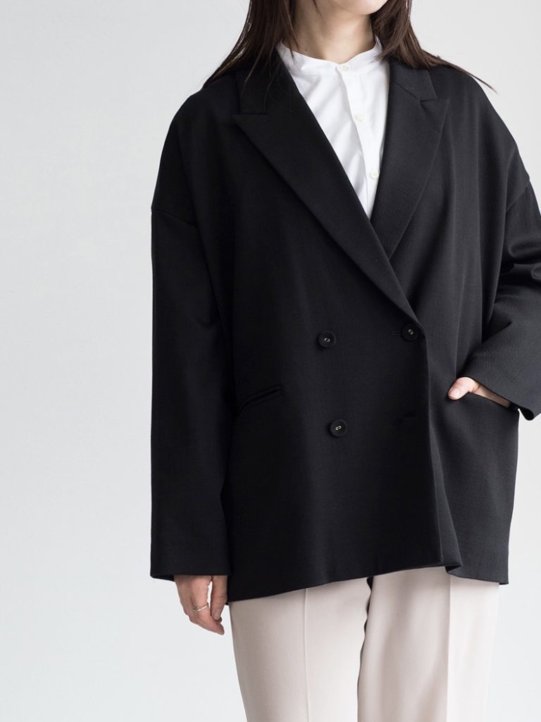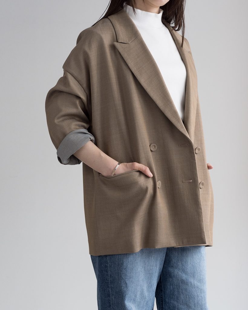 羽織るだけでスタイリングを品良く整えてくれる、頼れるダブルジャケットです。