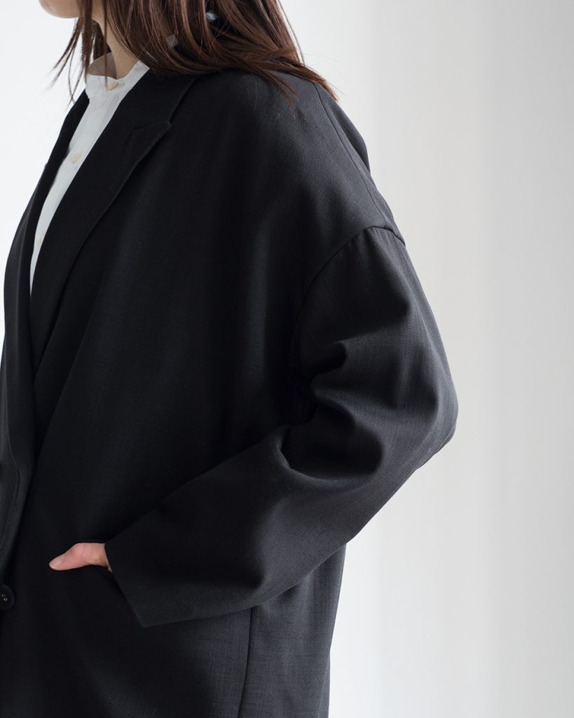 程よくゆとりを持たせたシルエットながら、広がり過ぎずすっきりとしたラインを演出してくれる一着です。