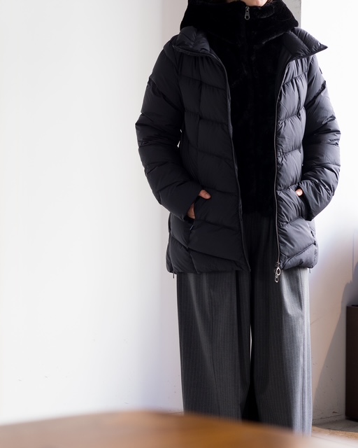 ふんわりとしたボリューム感が冬の装いに優しさを添え、取り外せばミニマルで洗練された印象に。