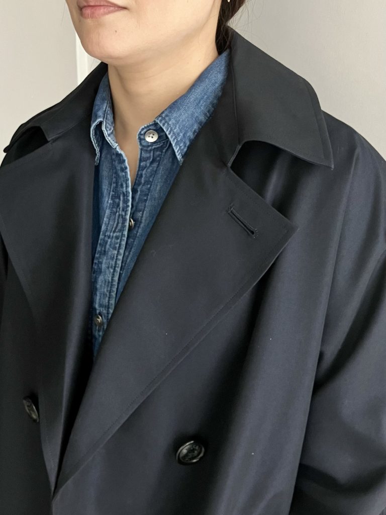 コットンポリエステル混の素材が張りのある襟のフォルムを