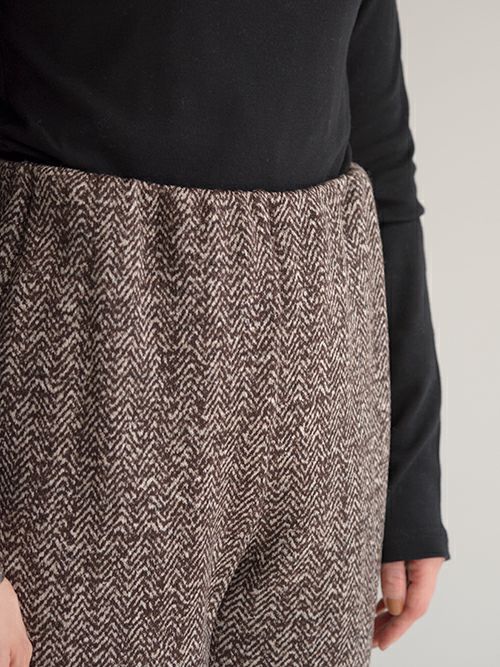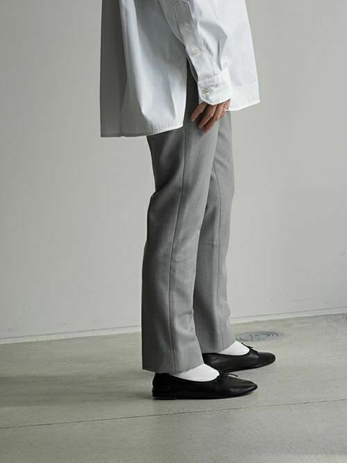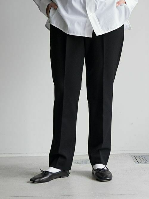 ヒップあたりにゆとりを持たせ、膝下からスッキリ見えるラインが特徴的。
