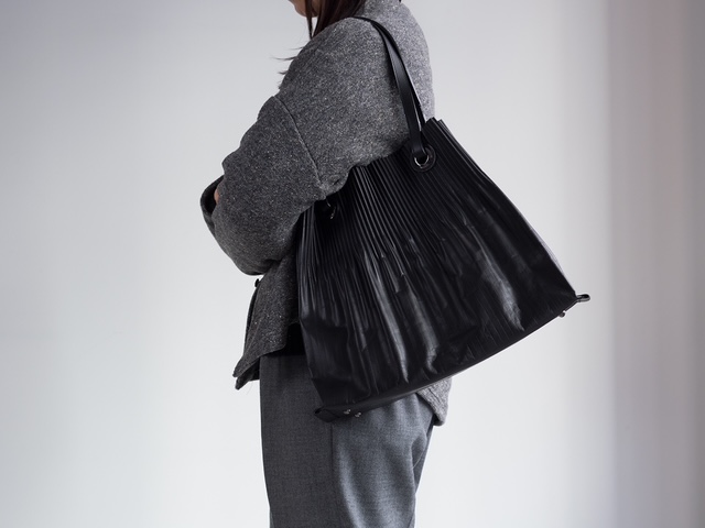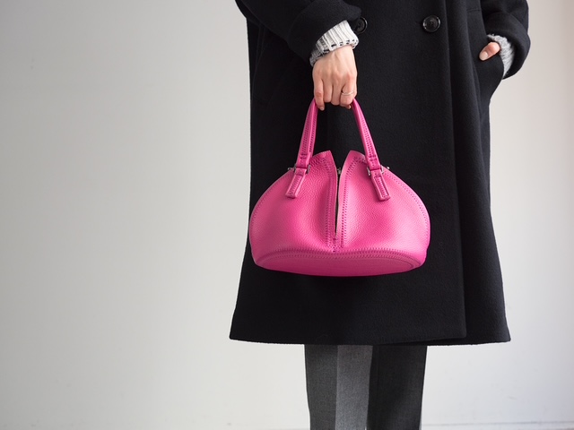 中のフックで形状が変わるので、使い方次第で印象が変わるバッグです。