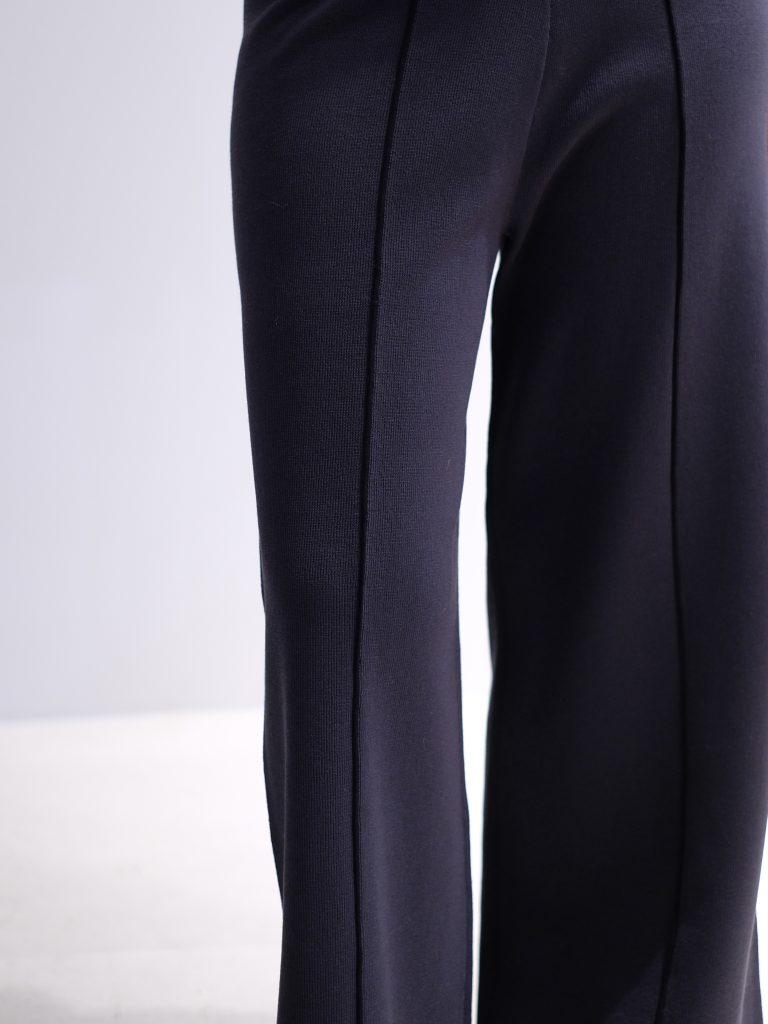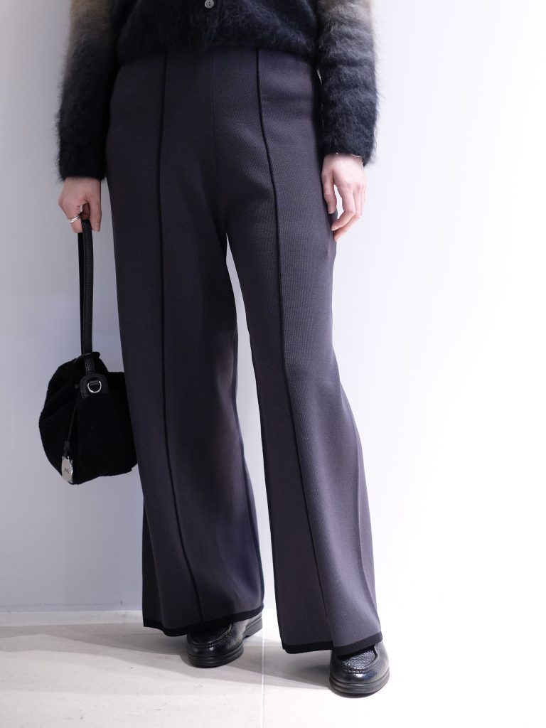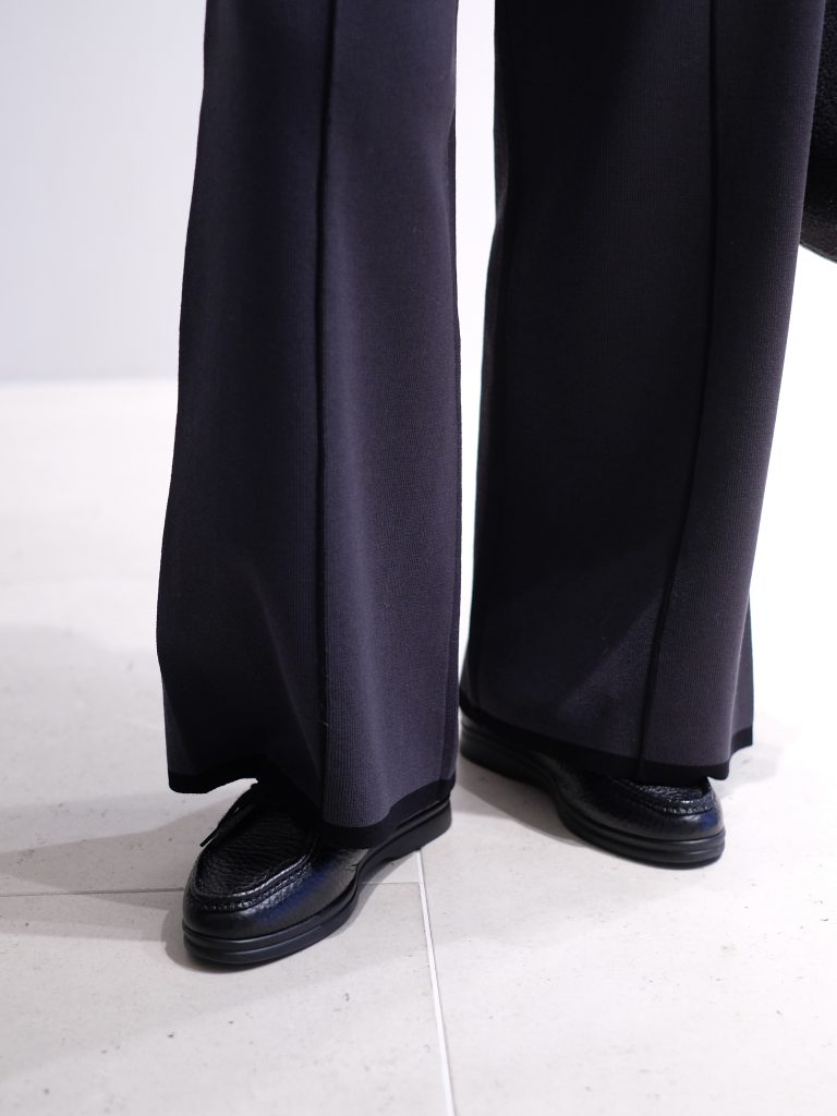 優れた伸縮性としなやかな落ち感のあるニット素材を使用したワイドパンツ。